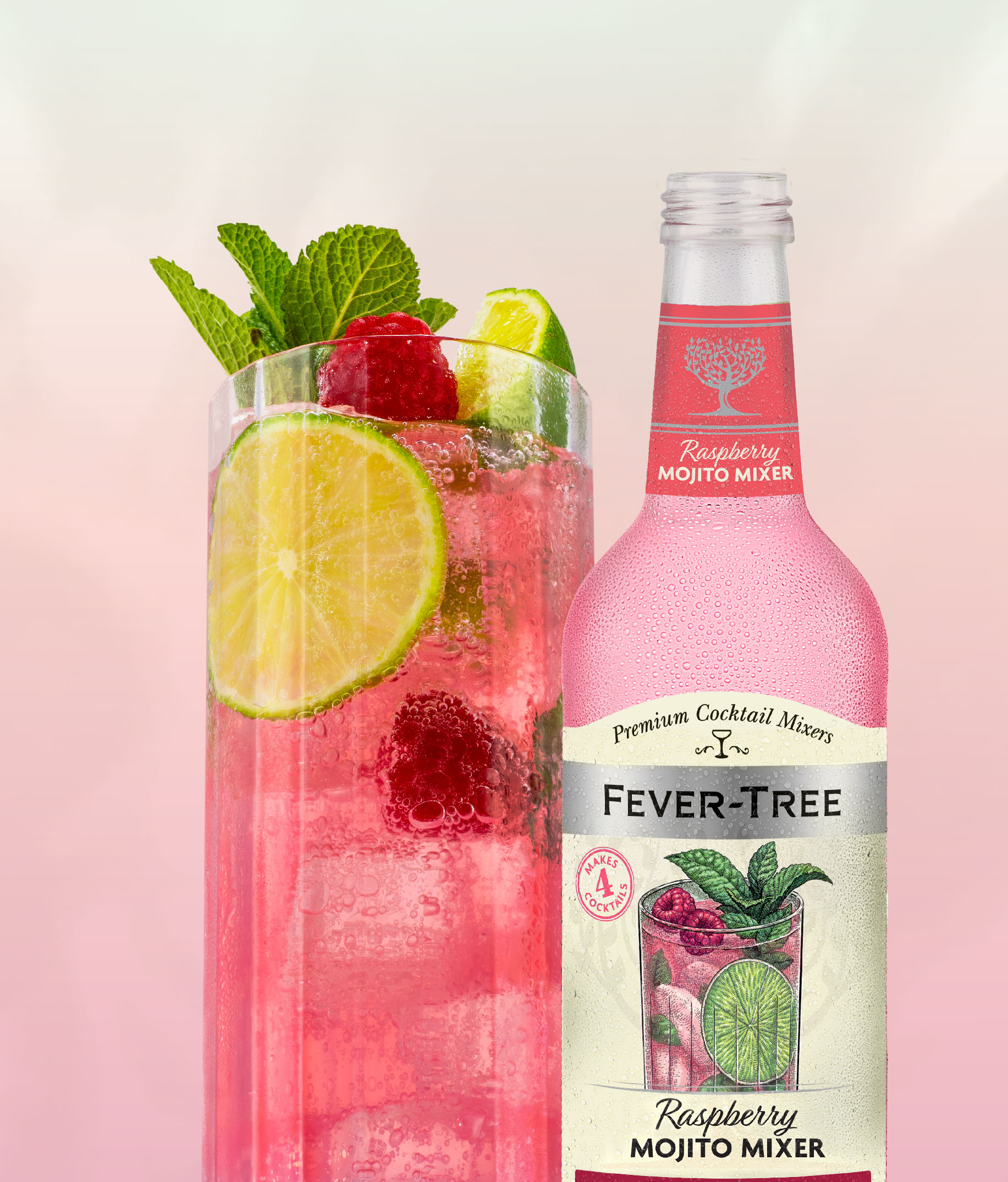 By blending the finest Mexican limes with Moroccan mint and Scottish raspberries, we've created a zesty and fruity Mojito mixer, which when mixed with rum, makes a delicious and easy Raspberry Mojito.