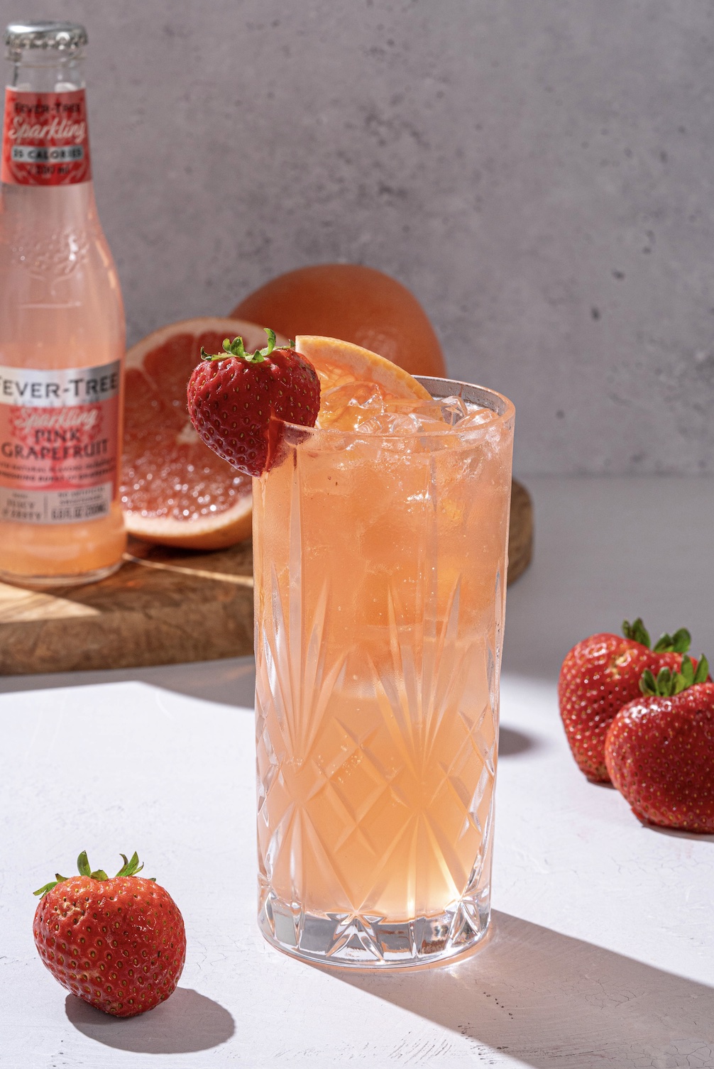 A sweet and tangy take on the classic Paloma, this refreshing cocktail combines juicy muddled strawberries with smooth tequila and a splash of our sparkling grapefruit. Bursting with bright citrus and ripe berry flavor, the Strawberry Paloma is sunshine in a glass—fruity, fizzy, and endlessly sippable.